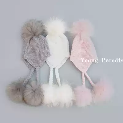 Baby hat ins raccoon hair ball Autumn and winter cute cute infants, boys and girls ear protection braids wool pullover hat
