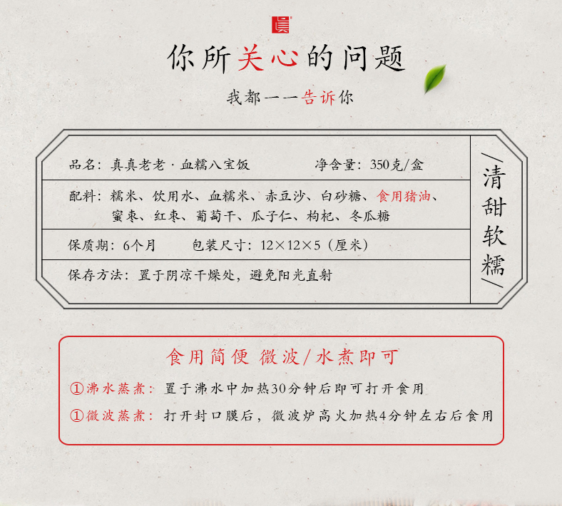 Zhenzhen old blood glutinous rice eight treasure rice Jiaxing specialty blood glutinous rice delicious convenient instant rice 1 box 350g