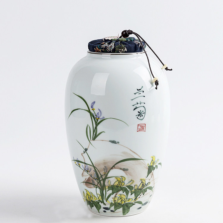 Tea leaf jars hand-painted ceramic green flower porcelain deposit tea pot large number handmade utility-made tea with green porcelain tea path accessories preservation box