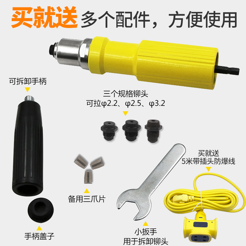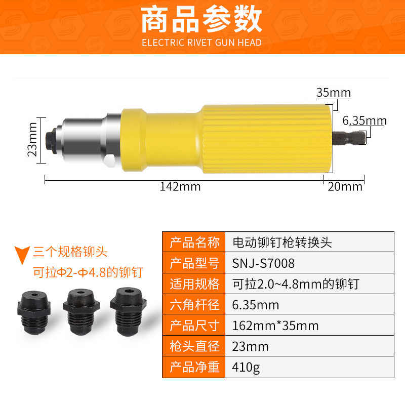 Minate rivet gun head orange rivet gun SNJ-S7008 blue rivet gun SNJ-S7006 upgrade model belongs to the shell to send 5 meters socket upgrade model plus 12vSJN hand electric drill