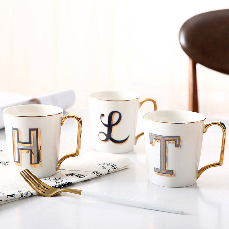 Romantic breeze Nordic wind ceramic cup English letter cup depicts Phnom Penh coffee cup couple breakfast cup