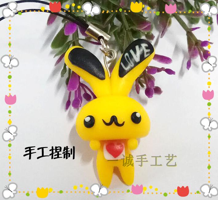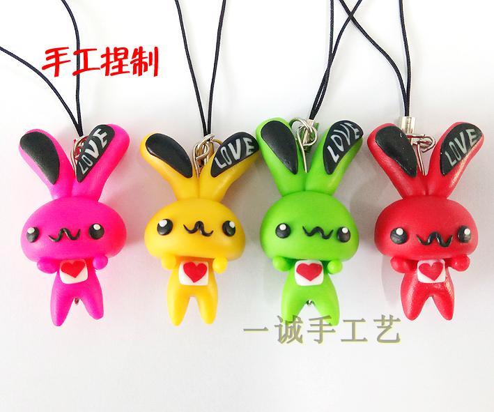 Zodiac Rabbit New Year Gift Handcrafted Knead Soft Pottery Small Pendant Send Bestie Friends Color Random
