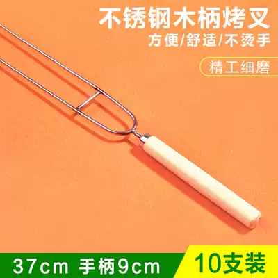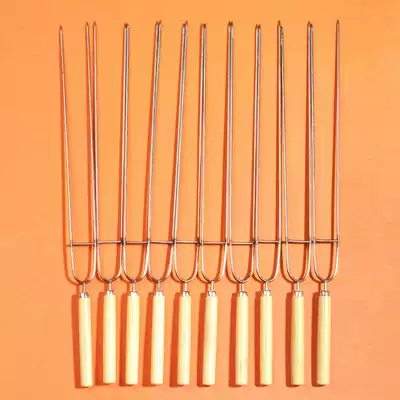 Wooden handle barbecue fork Stainless steel barbecue fork Barbecue stick needle chicken wings leg of lamb skewer u-shaped barbecue iron brazing tool