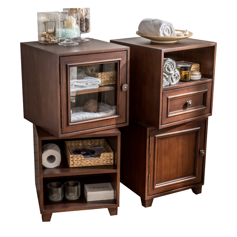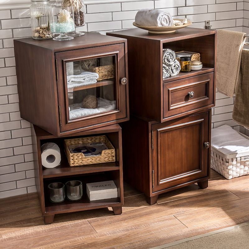 Solid wood floor-to-ceiling bathroom toilet side cabinet European and American storage and storage Powder Room cabinet side cabinet Living room bucket cabinet