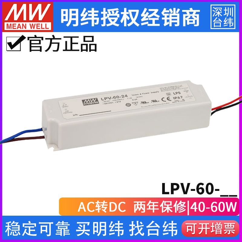 Taiwan Mean Well LPV-60 Full protection IP67 waterproof LED power supply 60W constant voltage 5 12 15 24 36 48 V