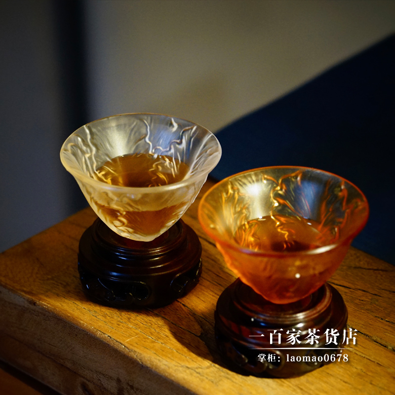 Liang Mingyu ancient method glass) Wan Si cup amber tea drinking tea set exhibition cup original design Baicai cabbage