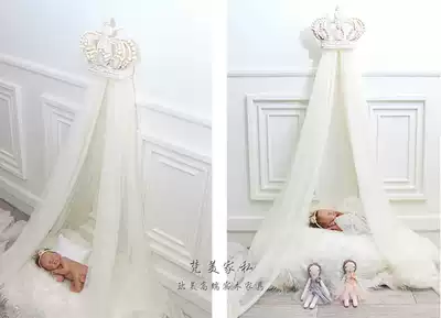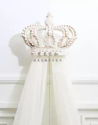European-style solid wood bed curtain frame French retro old carved crown Korean princess room decoration curtain curtain head shelf