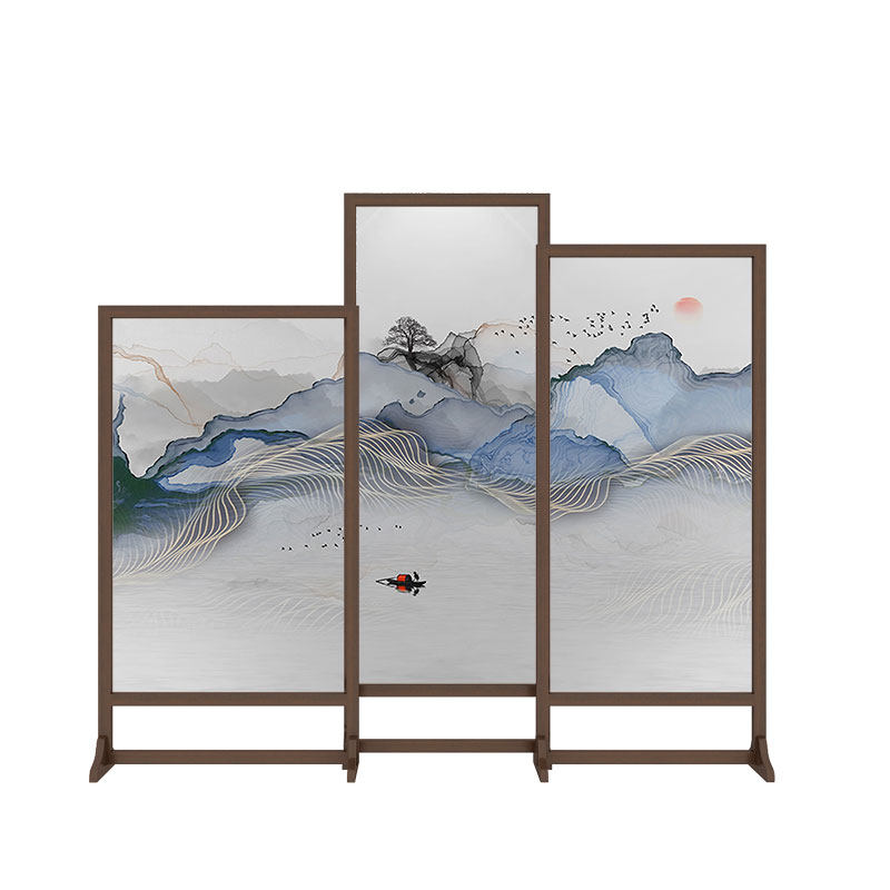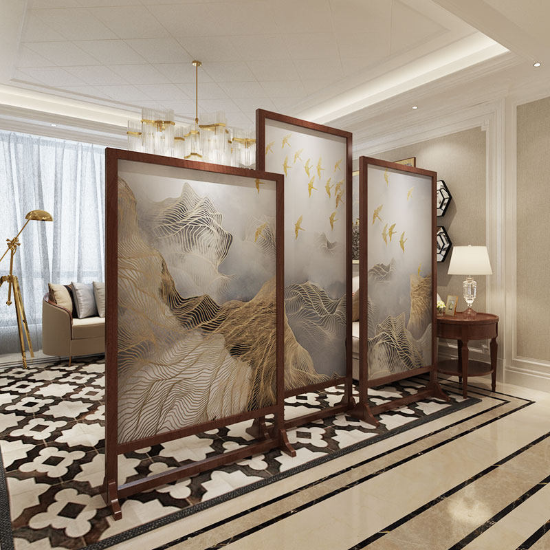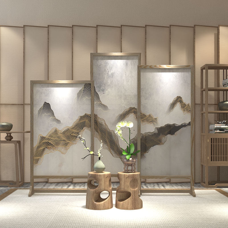 Modern Chinese simple solid wood screen Living room bedroom partition screen Tea room study movable seat screen partition