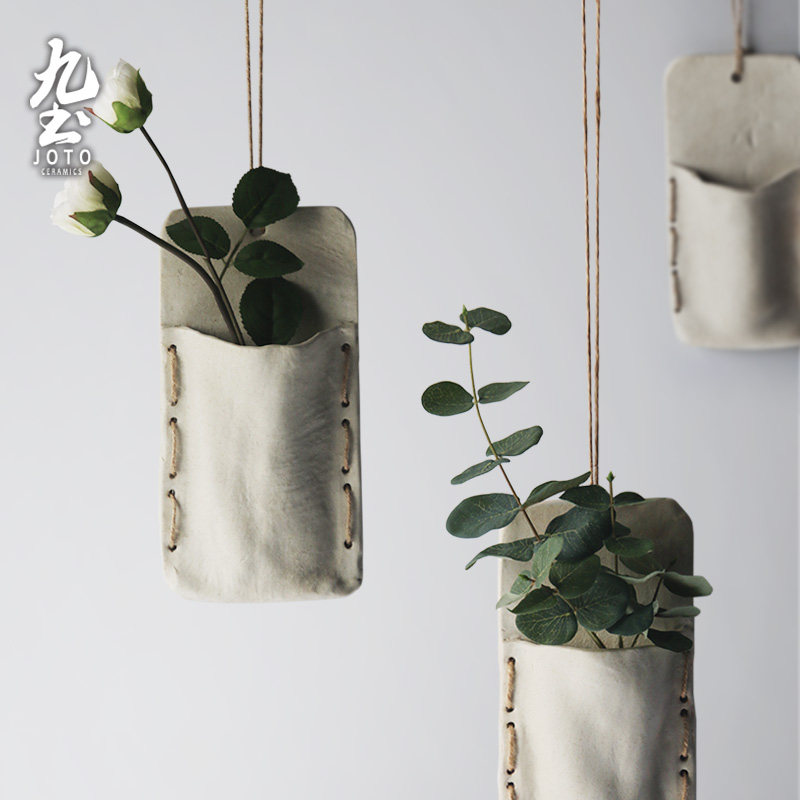 Nine-earth hanging flower pot creative flower-flower-hanging rope flower-ware wall ceramic floral hanging basin wall-hanging flower pot plant wall decoration