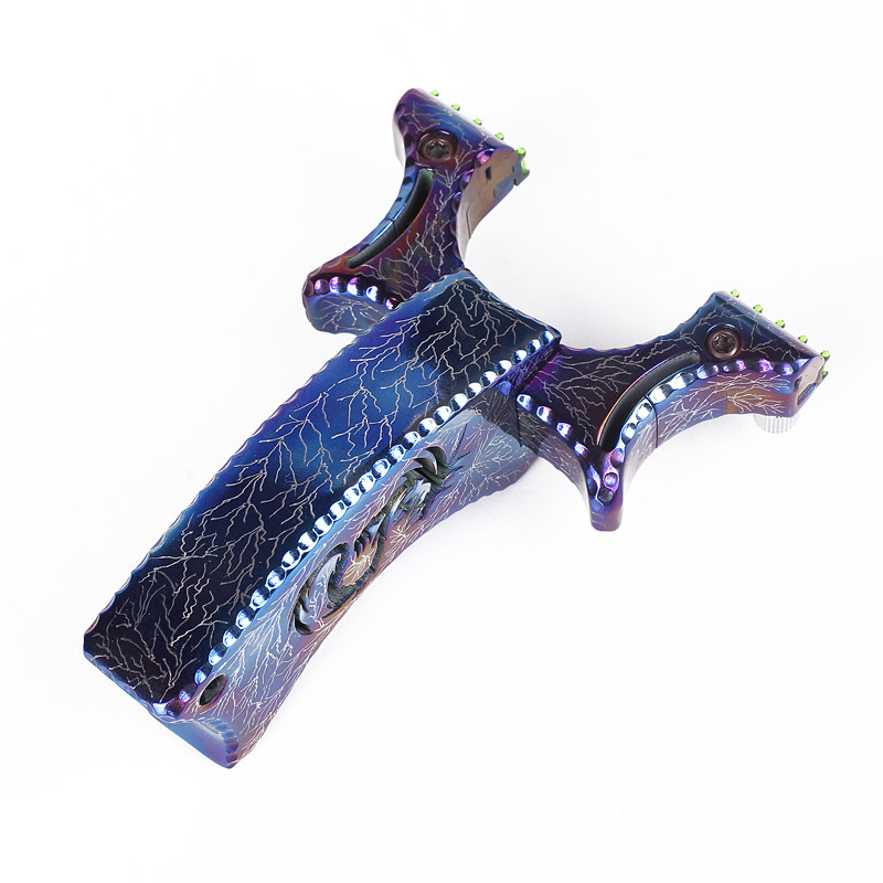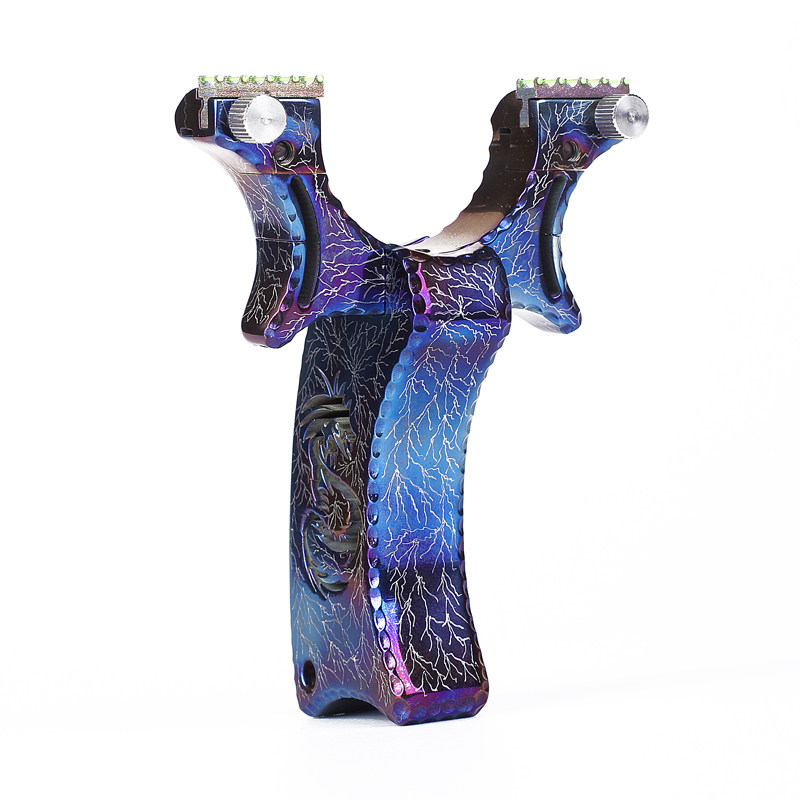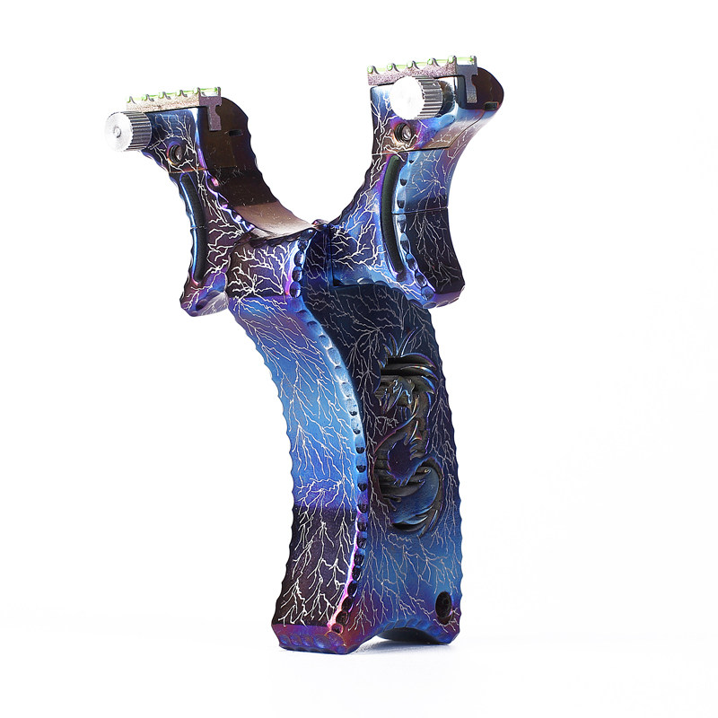 Elastic all titanium alloy TC21 precision aiming point slingshot counter-curved outdoor flat leather band free clip actual combat competition