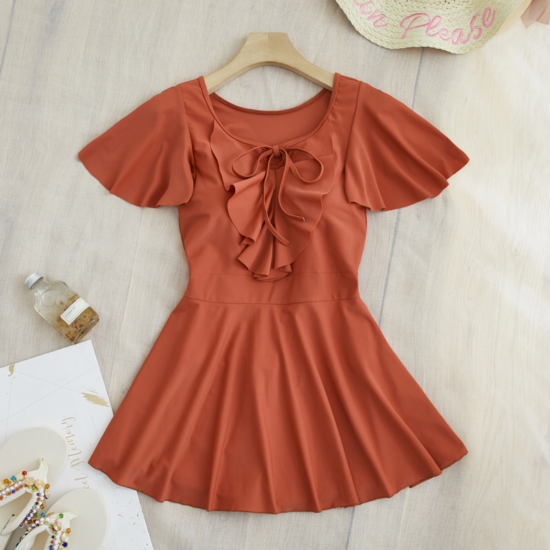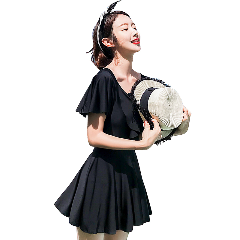 Swimsuit women's one-piece flat angle belly cover thin conservative skirt large size fairy fan sexy Korean hot spring 2021 new