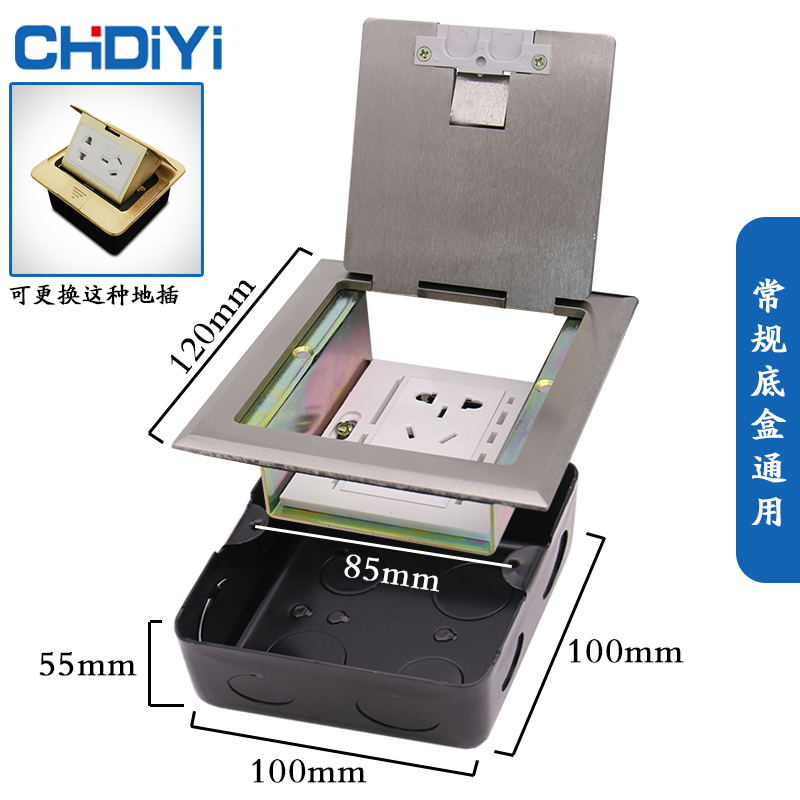 Ground Socket Open Type Concealed Stainless Steel Home Waterproof Five Holes Multifunction Floor Socket Invisible Ground Socket