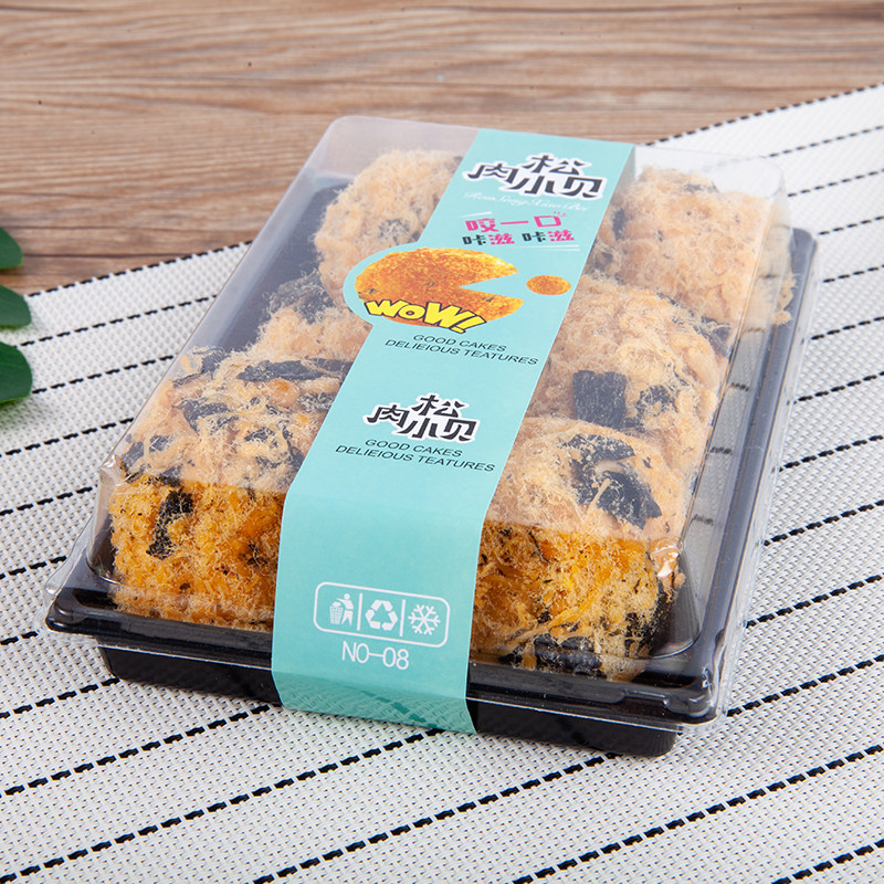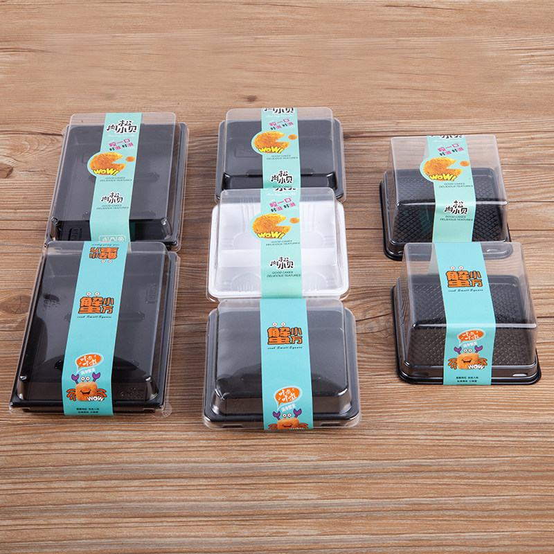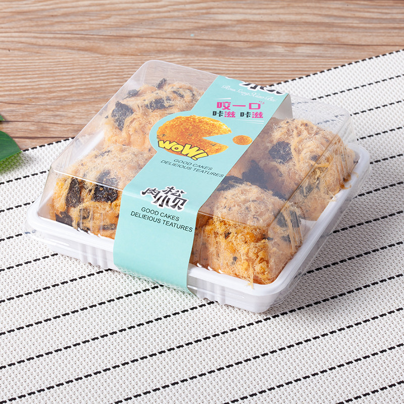 Four grids 6 pieces of meat pine small beboffles cake aperitif paper plastic case Snowy Lady bread packaging box 100