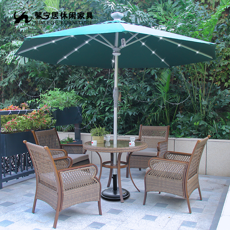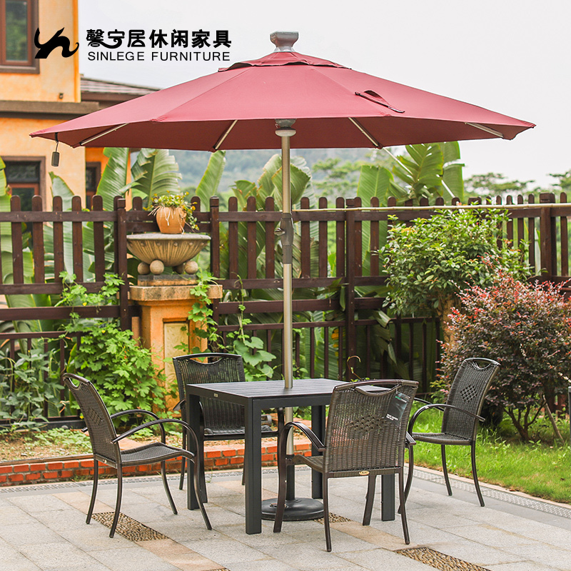 Outdoor parasol LED column remote control automatic with light umbrella Hotel catering solar garden umbrella
