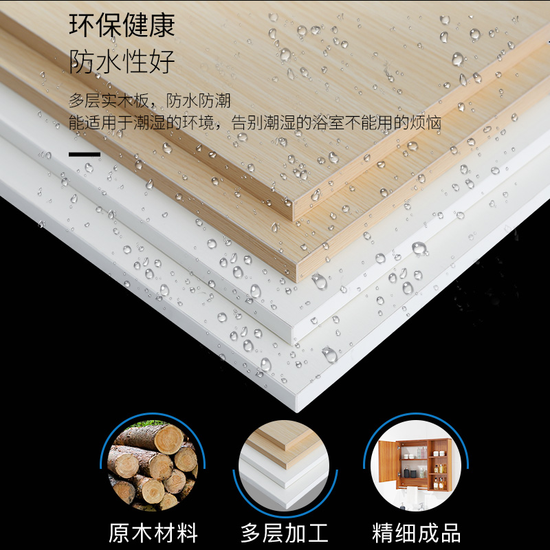 Custom solid wood mirror cabinet Wall-mounted powder room mirror Wall-mounted toilet face mirror box Separate storage with towel rack
