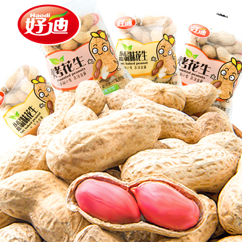 Haodi Salt Baked Peanuts Fried Boiled Salted Dried Separate Bags Independent Small Packed Snacks with Shells 2022 New Wholesale