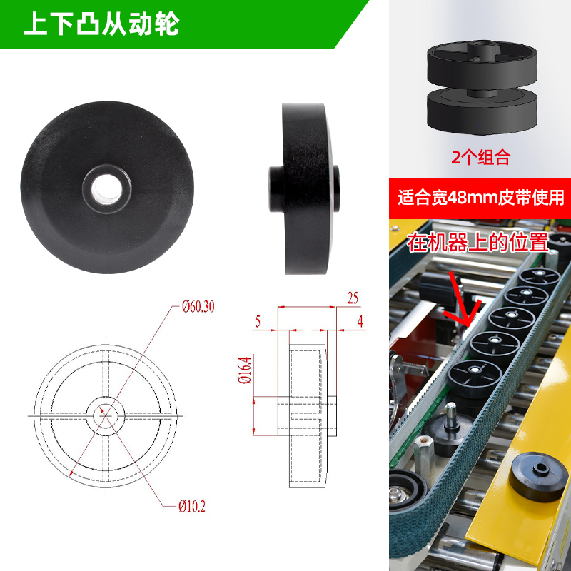 Upper and lower convex driven wheel upper convex driven wheel lower convex driven wheel width 8 high 5 driven wheel 28 belt fit 1