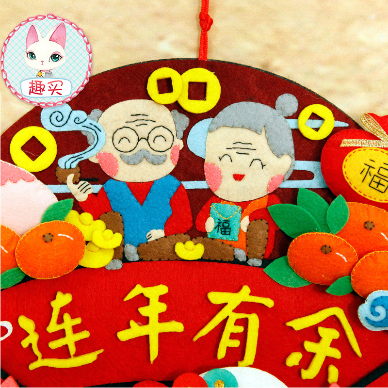 Spring Festival New Year gifts Happy Reunion Wall Hanging Accessories Unwoven Fabric Handmade Cloth Art Diy Material Bag Free Of Cut