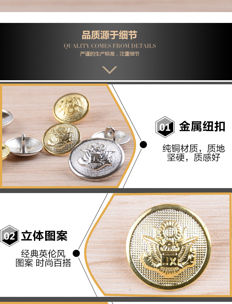 New Arrival Gold Silver Button Button Metal Round Button Retro Versatile Men's and Women's Suit Coat Windbreaker Button
