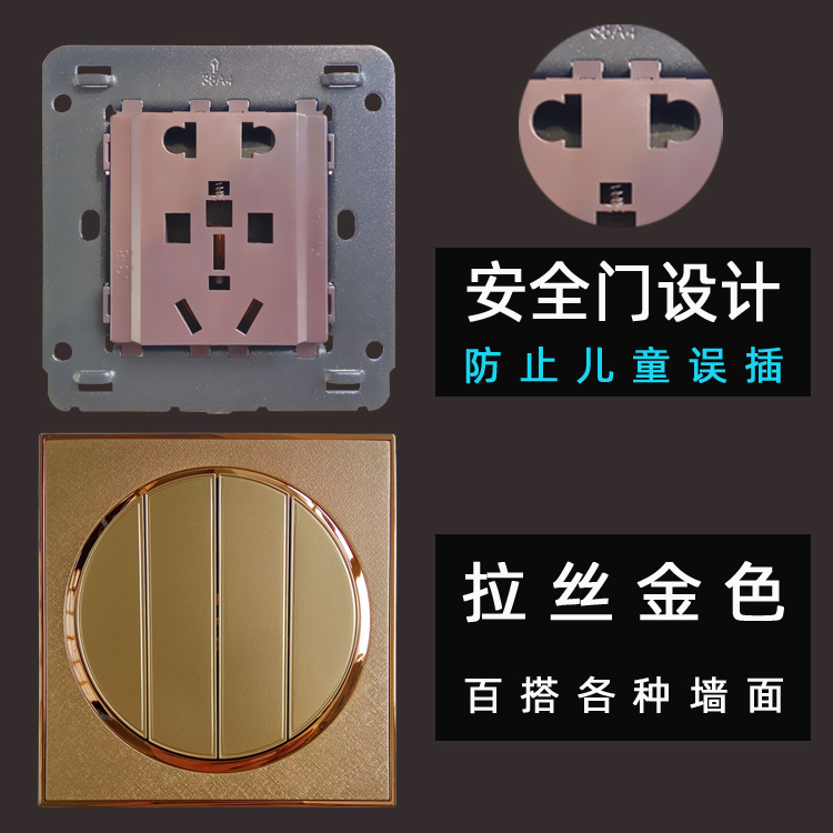 Wire Drawing Golden Air Conditioning TV Computer USB Five Hole Socket Open Two Open