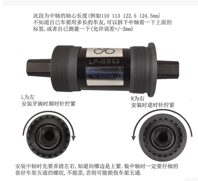 lp-bb68 middle shaft bike square hole middle shaft sealing shaft LP middle shaft 107-127 5MM full spec