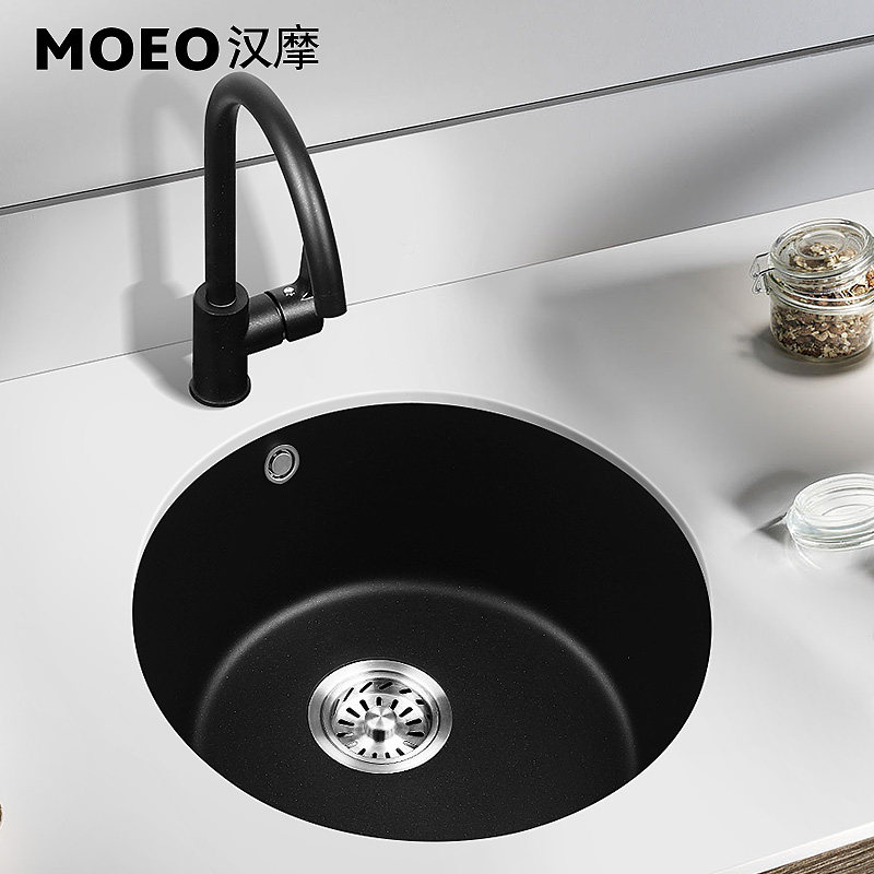 Hanmo quartz stone round sink bar small single sink table kitchen basin granite sink basin
