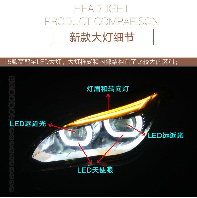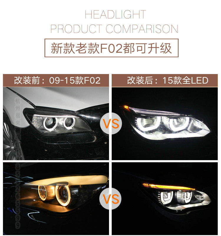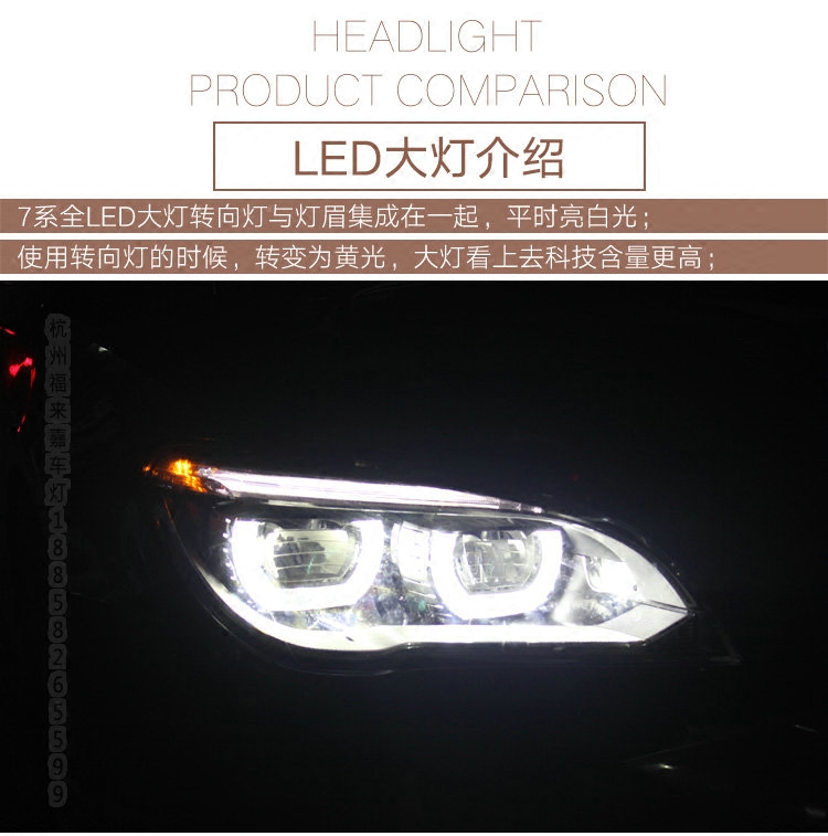 BMW7 series full LED headlight assembly old model change new low with raised with F02 upgrade LED living room light angel eye