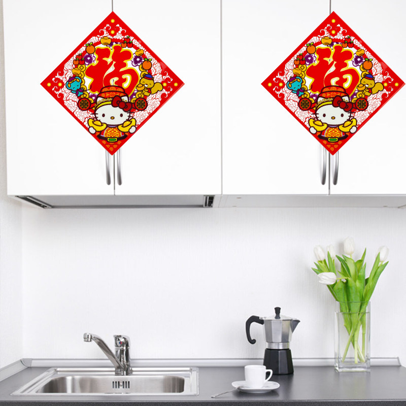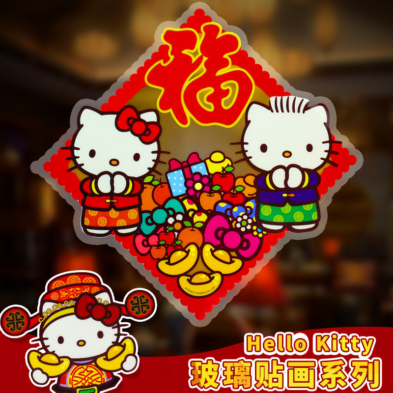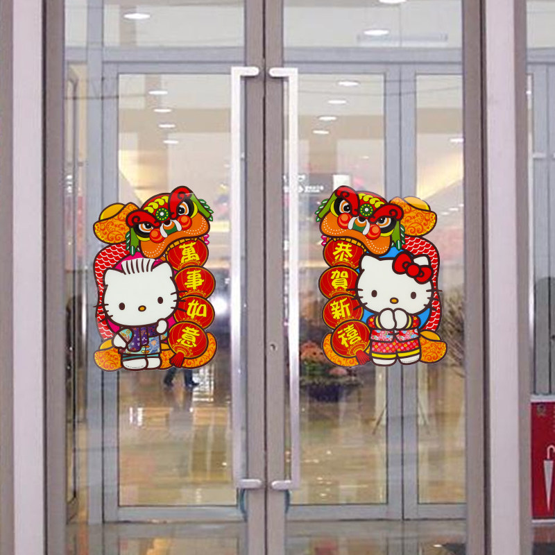 New Year's Spring Festival decorations Hello Kitty cat glass sticker painting New Chinese New Year window flower shop shop window living-room door sticker