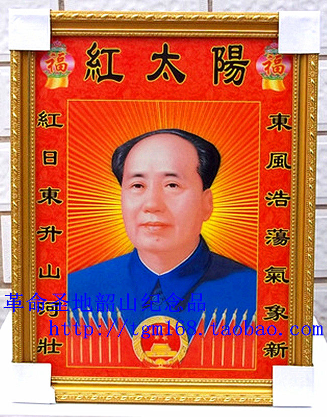 Chairman Mao's portrait with framed couplets Mao Zedong's Cultural Revolution period 3D three-dimensional head wall decoration paintings Home town house