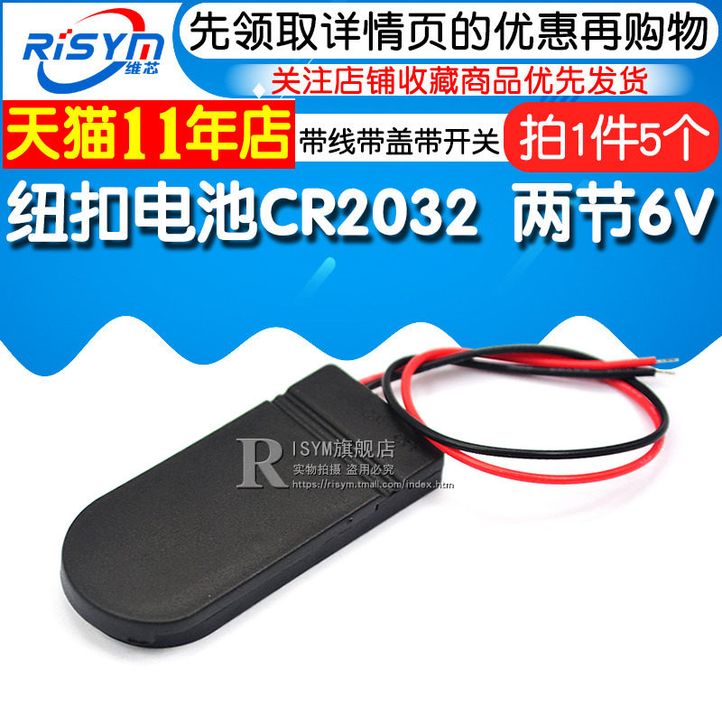Button battery CR2032 LIR2032 Two 6V with cable with cover with switch battery box(5)