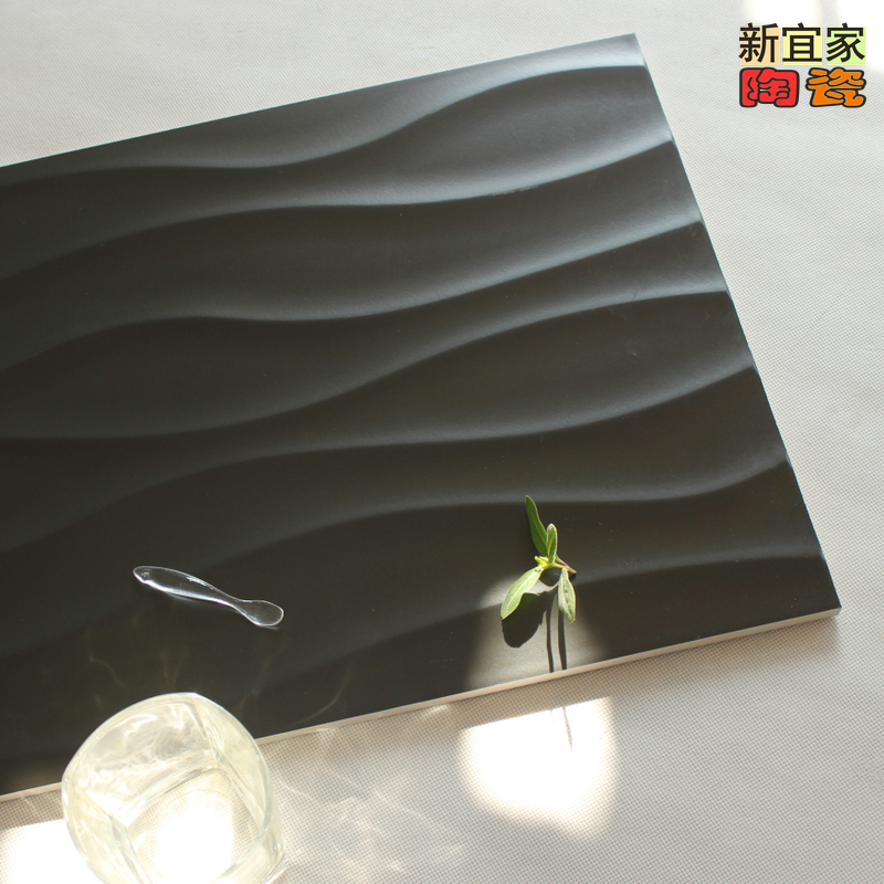 Pure Color Solid Fashion Personality Bathroom Interior Porcelain Sheet Wall Brick Wavy Tile Imitation Ancient Brick Black White Matt