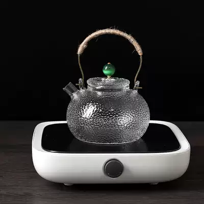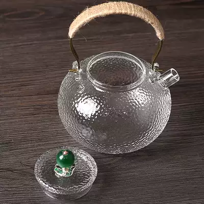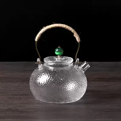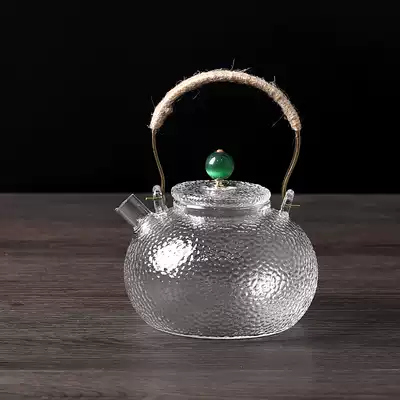 Handmade hammer glass pot Japanese thick lifting beam pot cooking teapot warm teapot kung fu tea set black crystal stove