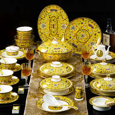 67 Wanfu Jinan Peacock Blue set 67 Palace Wanfu Jinan Imperial Yellow set 86 Wanfu Jinan Imperial Yellow set 4 5-inch high-legged rice bowl yellow a 7-inch bone plate yellow an 8-inch moonlight flat