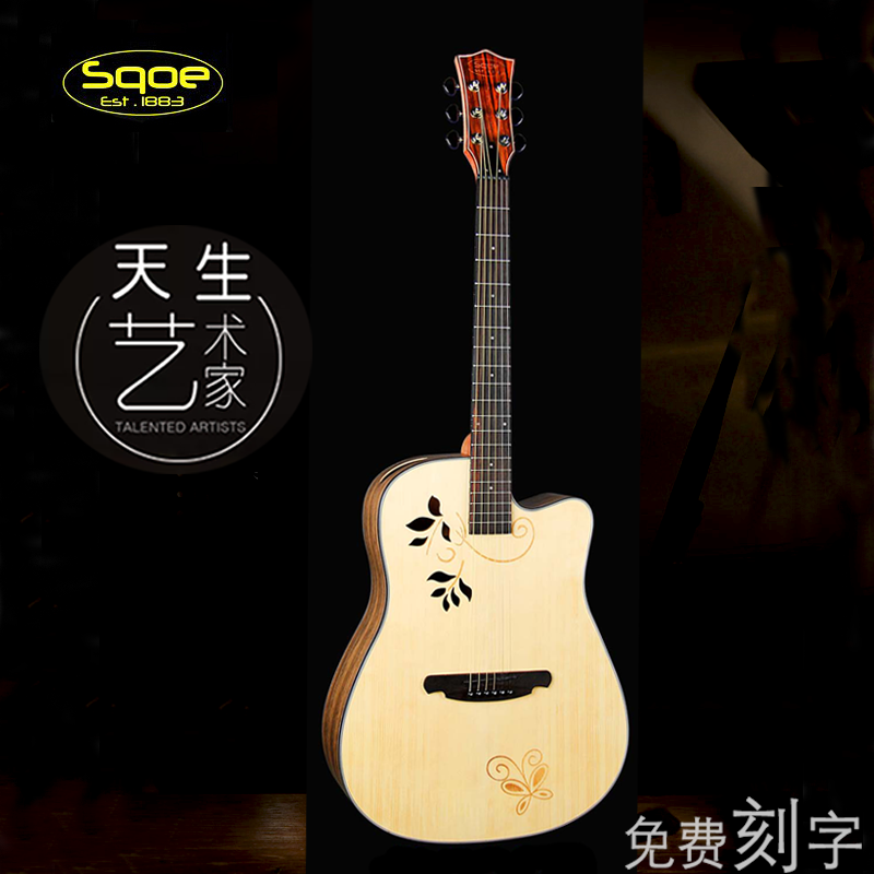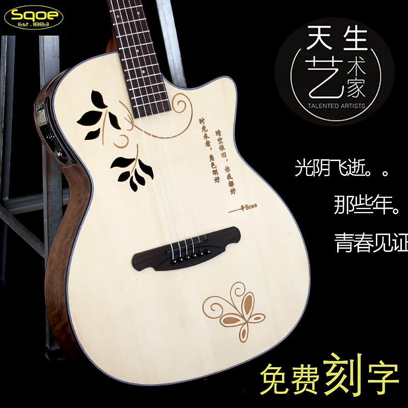 (Free lettering)sqoe guitar folk 40 inch 41 inch guitar veneer electric box Travel personality gift for men and women