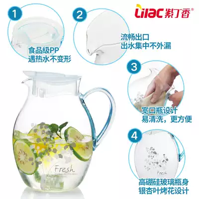 Lilac cold kettle large capacity glass high temperature cold white water cup tea pot set set household explosion-proof cold kettle