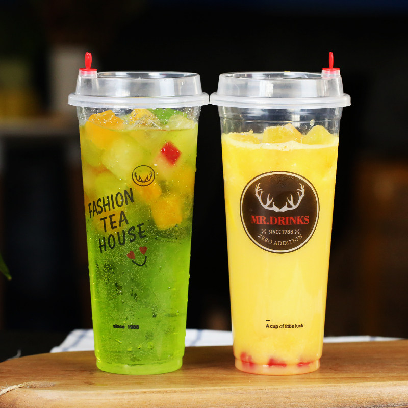 Creative 90 thickened antler cup 700ml disposable plastic milk tea cup Commercial juice cold drink packaging cup with lid
