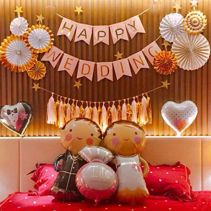 We married cheerleading wedding house arranged letter Balloon Happy Wedding Bedroom Background Wall Decoration