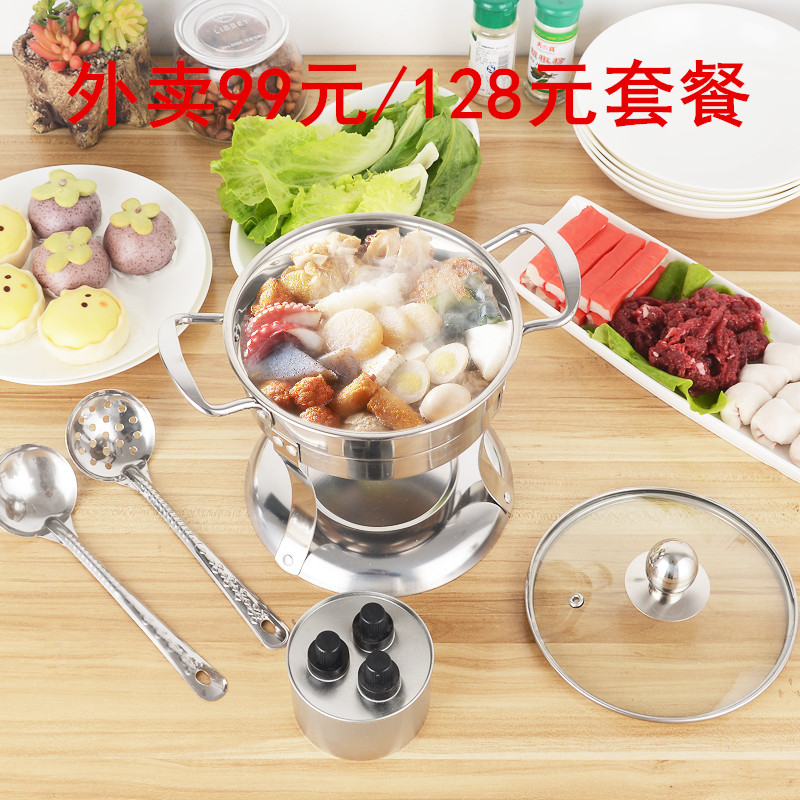 Naughty takeaway small hot pot stainless steel mandarin duck with double taste pot Alcoholic Stove Single Hot Pot outside with RMB99 package