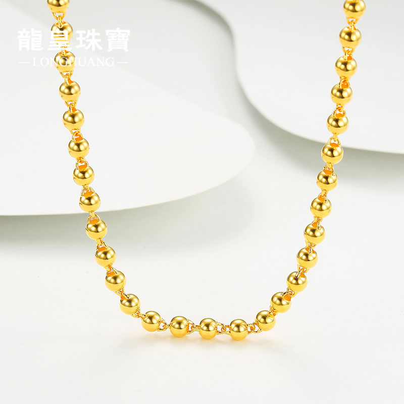 Dragon Emperor Jewelry Gold Light Bead Round Bead Necklace Men's and Women's Pure Gold 999 Classic Gold Necklace Can Be Customized