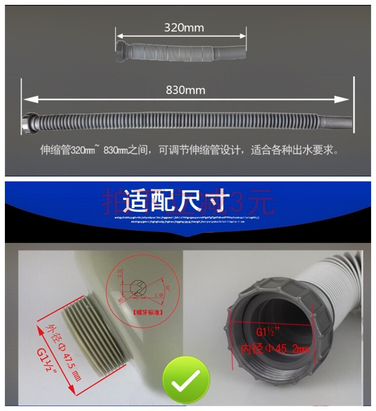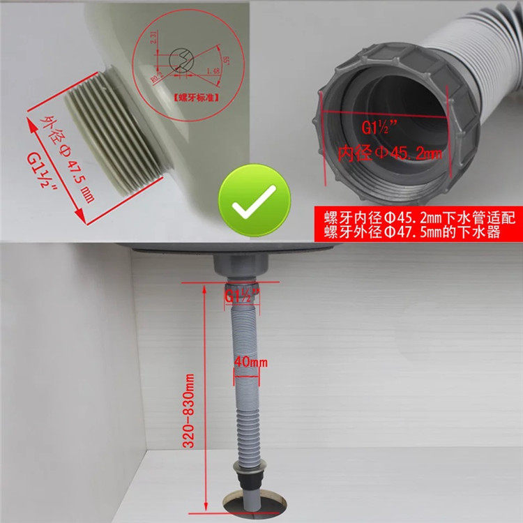 Downpipe telescopic tube (suitable for the Eufaction sink) Deodorized Wire Pipe
