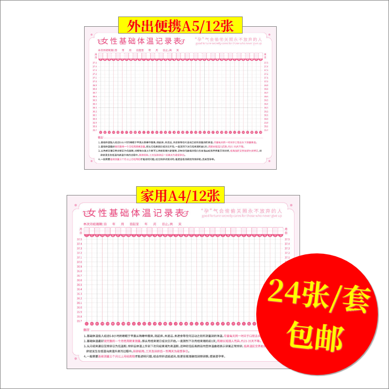Basal body temperature record table Female pregnancy test ovulation record table Adhesive table Test record form card Female menstrual record This physiological period record This pregnancy temperature test schedule