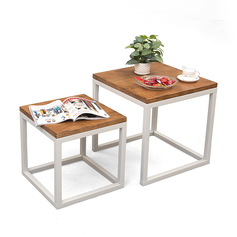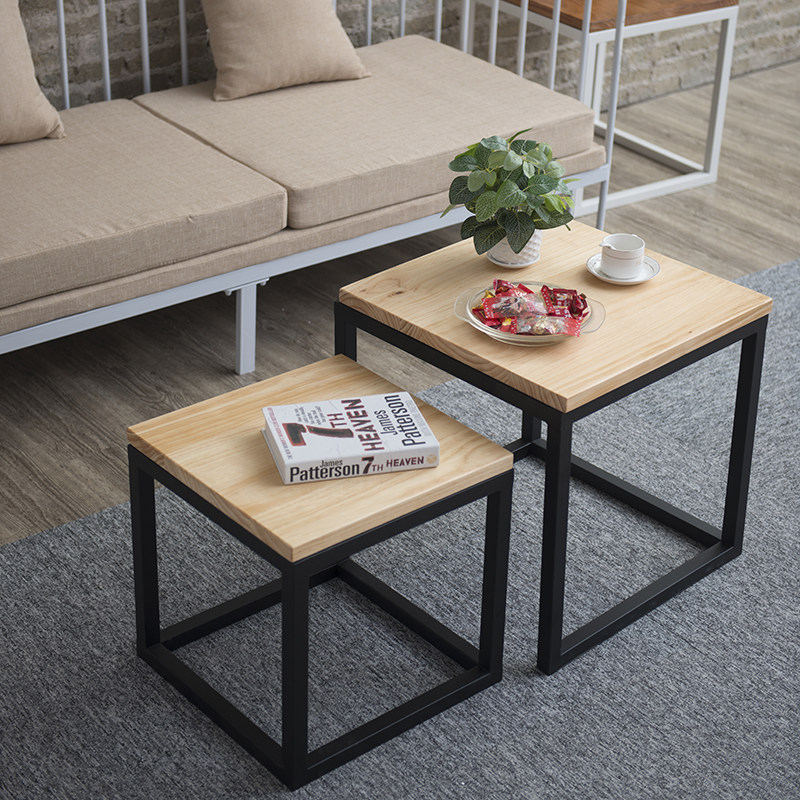 Nordic in short iron tea few solid wooden corners several sofa side tabletop high and low table combined tea table