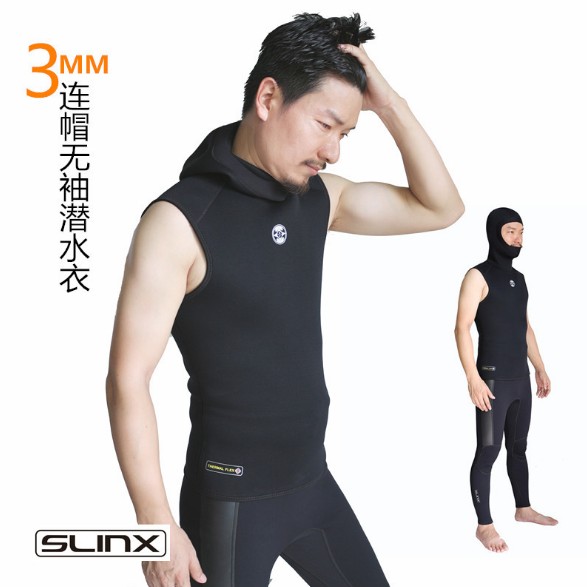 SLINX Dive Vest with a cap to keep warm 3mm Diving Vest with a hat vest wet dive head coat dive cap