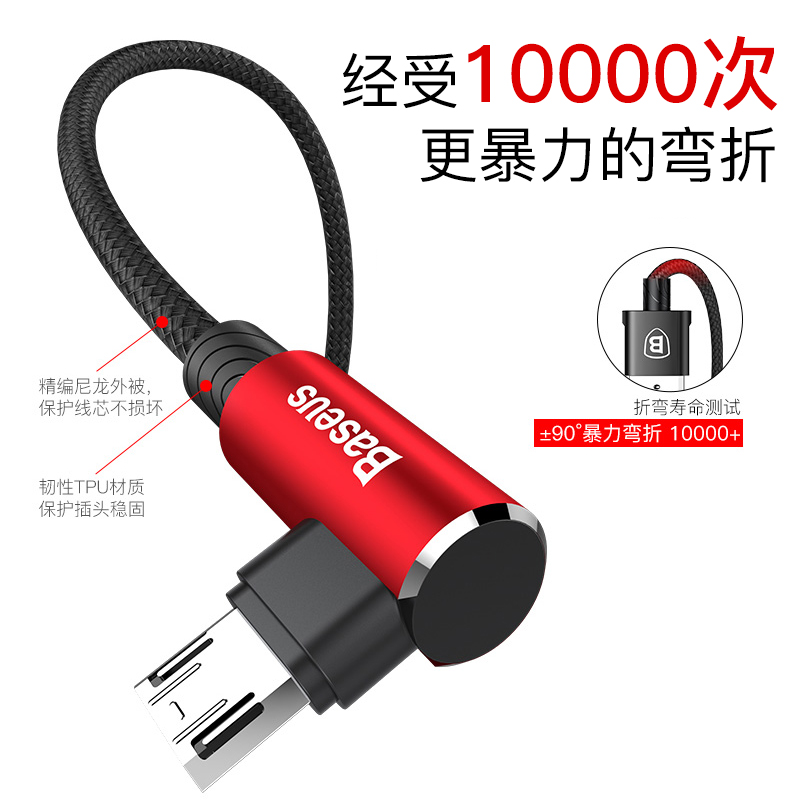 Game charging line unstoppable to apply Android phone universal 90-degree bend special flip-side blind plug fast-charge usb data line 90-degree angle elbow lengthened oppo two-meter L single head vivo-T