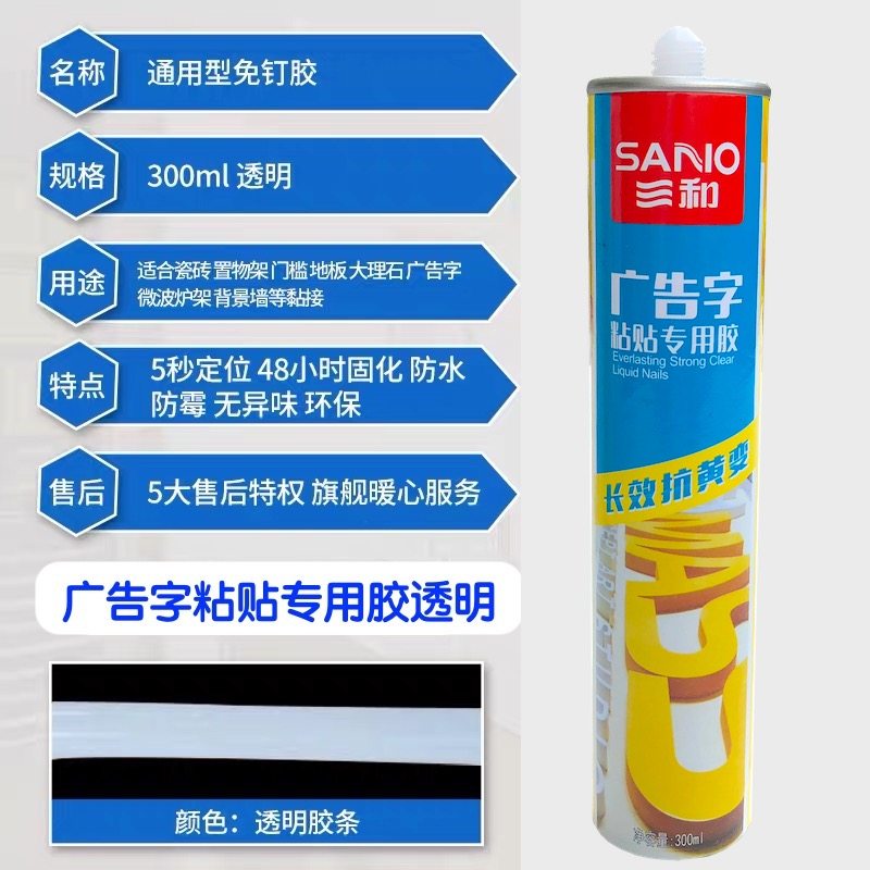 Sanhe glass glue Free liquid nail advertising word adhesive special glue Transparent 300ml effect anti-yellowing
