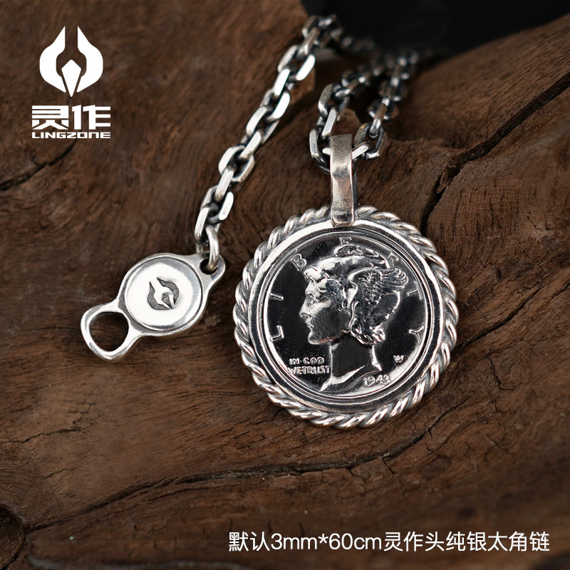 1 4-inch sleeve wrench man Silver coin pendant (without chain sub) 1 4 inch sleeve wrench man Silver coin pendant 3mm taijiao chain set