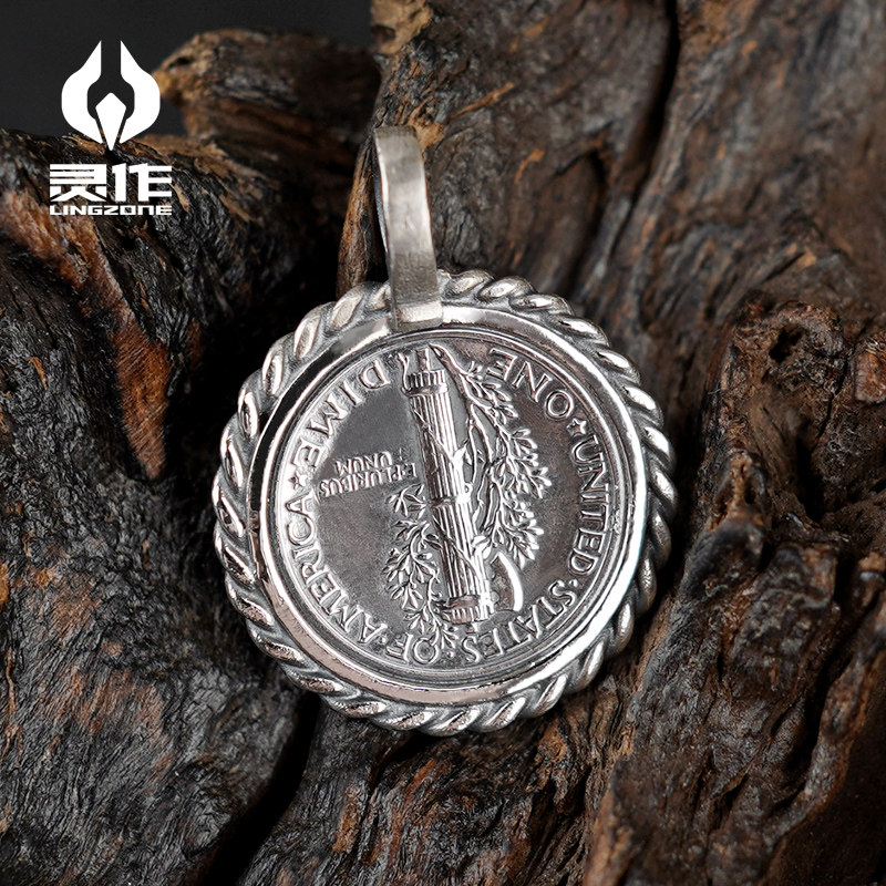 Hearse silver accessories pure handmade antique coins Lace Up Lace Up Pendant 1 4 Inch Sleeve Wrench Man Ink Chulli Silver Coin Pendant