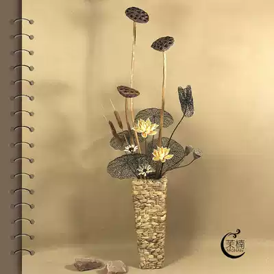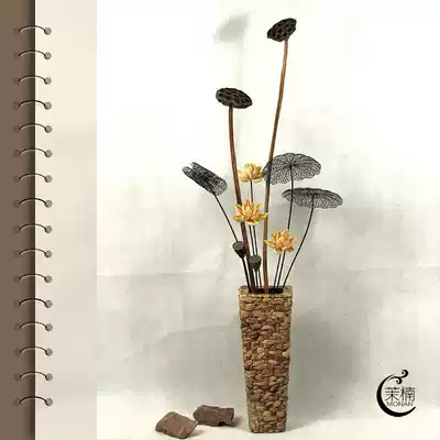 Living room dry flower arrangement, dry shower, natural dry flowers, floor-to-ceiling high branch decoration, real bouquet, air-dried large dry lotus decoration