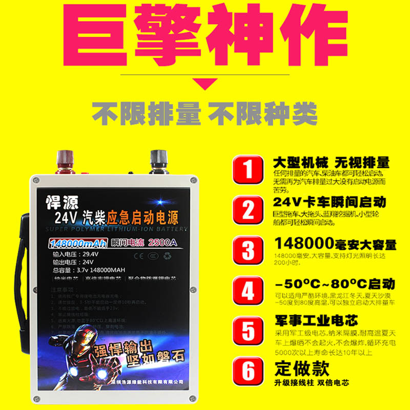 Hanyuan car emergency start power supply large capacity customized version 12V24v strange hand heavy truck truck ride charging strong start