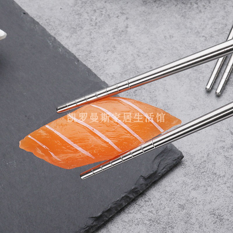 304 stainless steel chopsticks 10 pairs of household non-slip family packs creative personality simple square silver iron fast metal